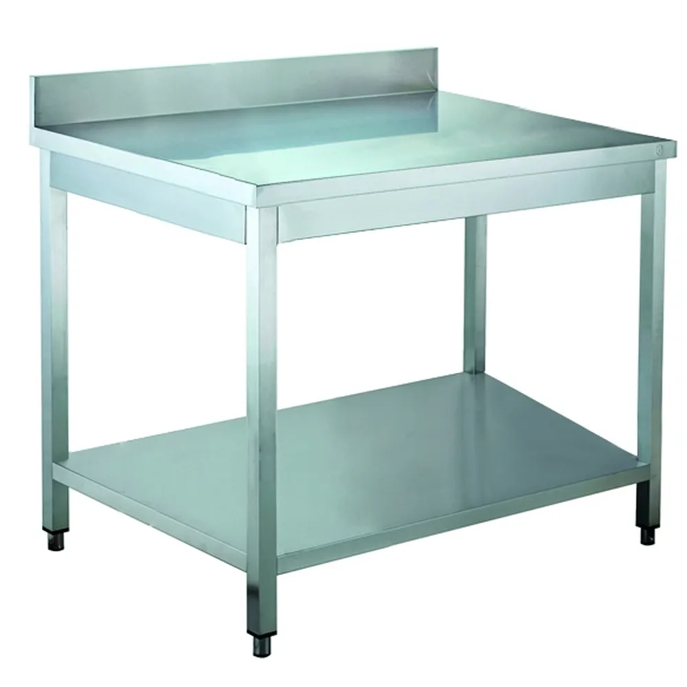| Tip produs | Masă profesională inox pe picioare cu raft inferior și protecție spate |