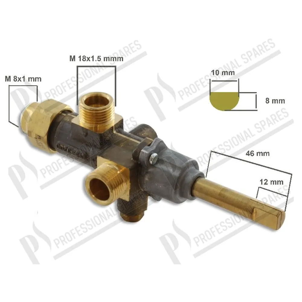 inlet gas M18x1,5 hose diametru 12 mm outlet gas M18,5x1,5 hose diametru 12 mm thermocouple connection M8x1 D-shaft diametru 10x8 mm, L=12/46 mm min. screw diametru 0,90